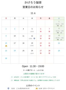 11月の営業予定