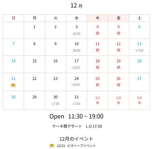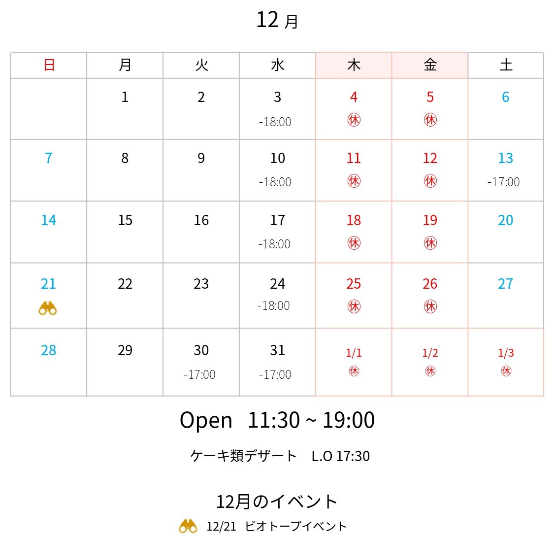 OPEN 11:30~19:00 (店内利用 L.O 18:30 ごろ )